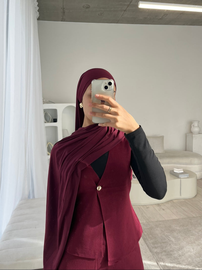 It comes with a sleeveless vest cardigan and gold button detail and wide leg trouser perfect for Autumn.